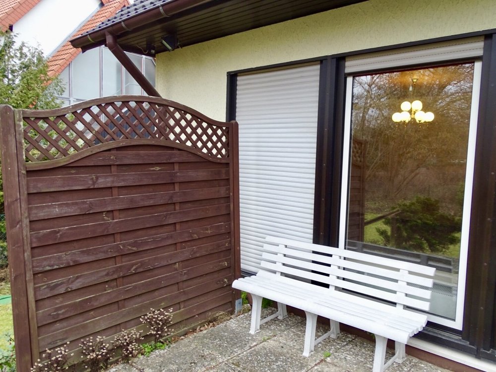 Es erwartet Sie ein Zuhause mit optimaler Raumaufteilung: Durch die Diele gelangen Sie in das riesige, lichtdurchflutete Wohnzimmer. Von hier aus können Sie sowohl auf die schöne Terrasse, als auch in den gepflegten Garten sehen und den beruhigenden Blick ins Grüne genießen.
